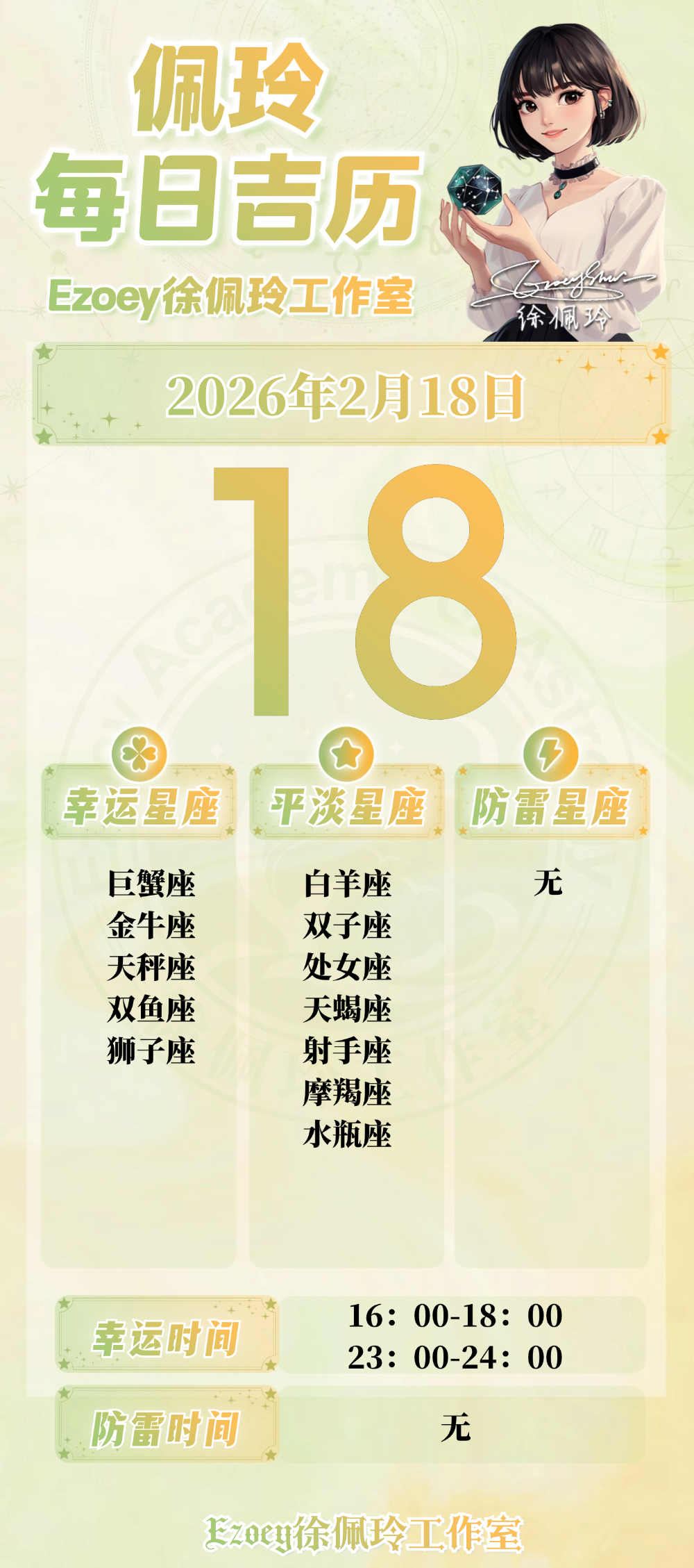 【2.18日播报】双鱼生日月 幸运星座:巨蟹座、金牛座、天秤座、双鱼座、狮子座——Ezoey徐佩玲26年星座播报