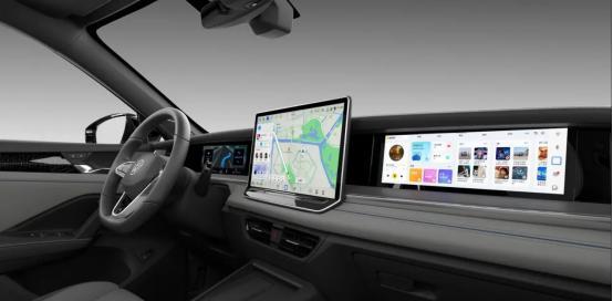 再看看内饰,这可真是有了翻天覆地的变化。全新探岳L更注重氛围营造,车内加入了大量氛围灯,内饰配色也更明快,很符合年轻用户的定位。它可是史无前例地配上了三块大屏,10.25英寸液晶仪表+15英寸中控屏+11.6英寸副驾驶屏。车机配备8155芯片,支持CarPlay和CarLife,还有HUD抬头显示,导航信息能和实景路面相融合,这在驾驶的时候可太方便了。大众经典的排挡区消失了,变成了转向怀挡设计,中央带有显示屏的旋钮很有高级感,可以调整音量、驾驶模式、氛围模式。而且手机还能远程控制车辆,像空调、座椅、方向盘、后视镜、前后风挡加热都能远程启动,这在寒冷的冬天或者炎热的夏天可太实用了。