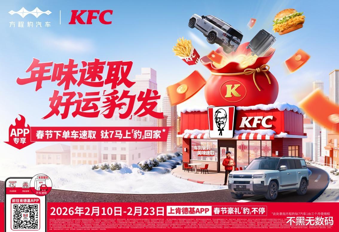 在马年新春即将到来之际,汽车圈与快餐界上演了一场出人意料的“联姻”。从2月10日至23日,比亚迪旗下主打个性化的品牌方程豹,正式携手国民快餐巨头肯德基,联合推出了名为“年味速取,好运豹发”的新春联名活动。这一举动不仅打破了硬派越野与高频消费之间的行业壁垒,更通过深度的场景融合,为春节营销提供了一个极具参考价值的范本。