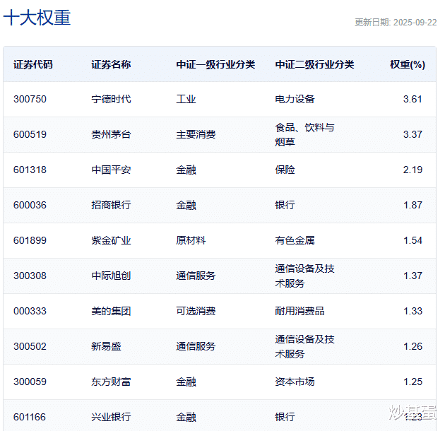 (来源:中证指数公司,截至2025.9.22,个股仅作列示,不构成投资建议和推荐,权重占比动态调整,仅供参考。)