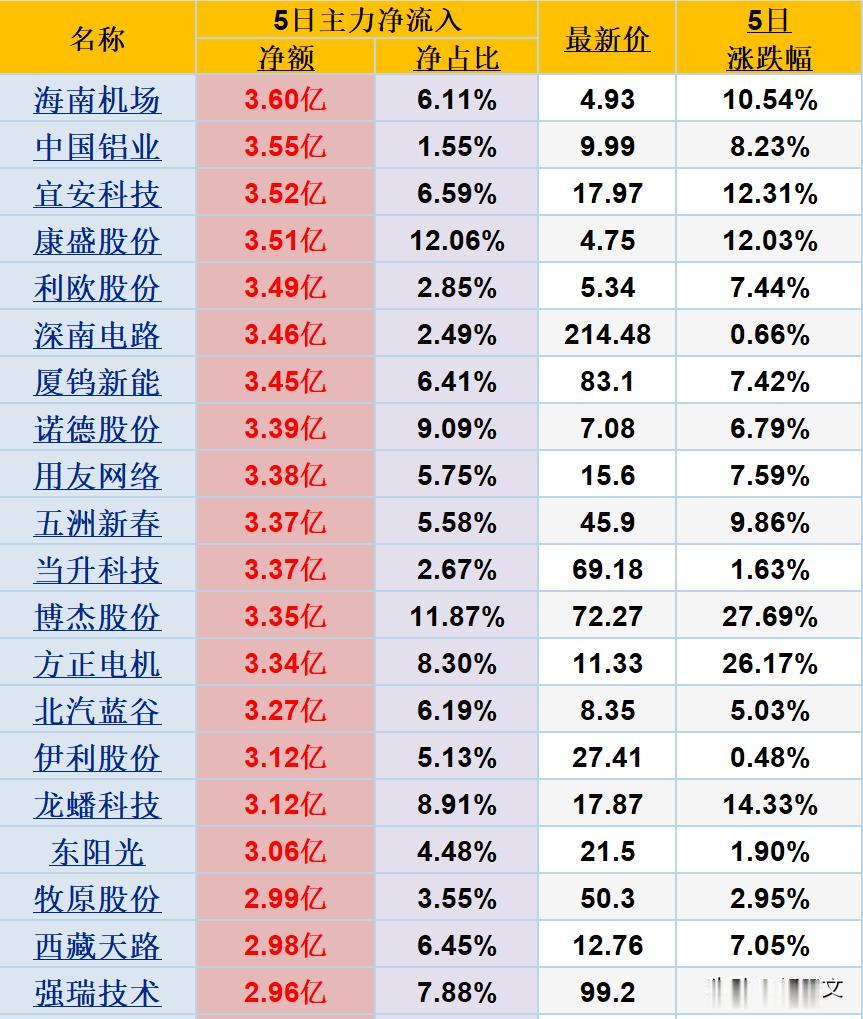 本周净流入排名靠前的41-60,解析如下:41. 海南机场:净额+3.60亿