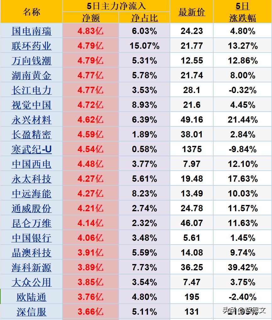 本周净流入排名靠前的21-40,解析如下:21. 国电南瑞:净额+4.83亿