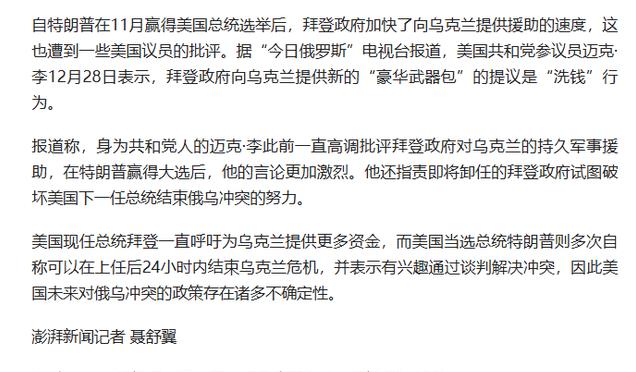 这就是拜登对援乌如此积极的原因。哪怕自己已经走到卸任倒计时阶段了,仍然还要不断地为援乌行动争取更多的拨款份额。