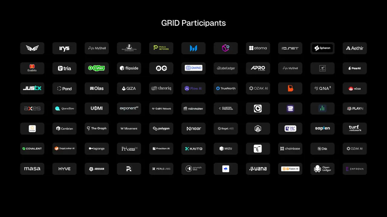如今,GRID生态已初具规模,集成了来自Web2和Web3超过110个合作伙伴,包括能够生成图表的Napkin、高级搜索引擎Exa、提供加密社交数据的Kaito以及EigenLayer等。
