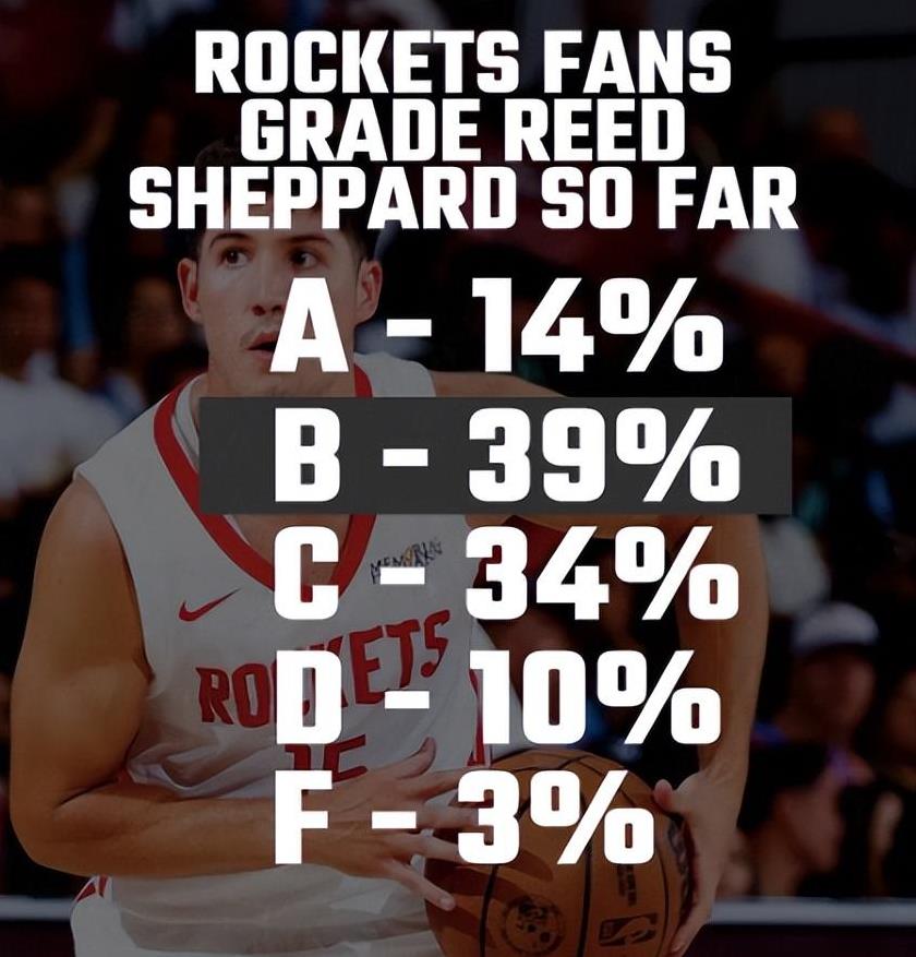 谢泼德夏季联赛表现评分美国媒体《SB Nation》最近让球迷们给谢泼德在夏季联赛的表现打分,结果是:14%的球迷给了他A,39%的球迷打了B,34%的球迷给了C,10%的球迷打了D,还有3%的球迷直接给了F。谢泼德在休赛期可是加练了不少力量,就想在夏季联赛里好好表现一下。不过现在的情况也不太乐观,杰伦-格林和惠特摩尔都走了,他压力也大了不少,火箭队留给他的时间其实已经不多了。从比赛来看,谢泼德在对手不太针对他的时候还能应付得不错,但一旦对方开始重点盯防他,就显得有点吃力了。虽然他投篮不错,篮球智商也还可以,但运动能力和身体条件确实有点吃亏,持球能力也一般。谢泼德提前退出了比赛,这样一来,火箭夏联队也就没什么看头了。这支临时拼凑的队伍只能继续打剩下的比赛。之前火箭连着输给了快船、活塞、老鹰和开拓者,这场终于赢了森林狼,拿到了首胜。比赛一开始火箭就遭遇了“地狱开局”,上来就被打出8比0,分差一度拉到17分。钱德勒先是助攻队友命中三分,接着自己又突破上篮得分。火箭慢慢追上比分,第一节结束时还落后9分。第二节火箭继续发力,钱德勒抢断成功,哈里斯三分命中,分差缩小到3分,森林狼赶紧叫了暂停。回来之后,森林狼又打出一波进攻,重新拉开分差,半场结束时他们领先了9分。火箭逆转取胜第三节森林狼还是压着火箭打,但没能在那段时间拉开分差,只领先了7分。到了第四节一开始,火箭突然发力,打出一波小高潮。钱德勒助攻队友快攻扣篮,森林狼只好叫暂停,这时候比分只差3分了。接着哈里斯罚球命中,火箭直接追平了比分。不过森林狼又重新拿回领先。火箭也没放弃,阿姆斯罚球命中追平,然后又上篮反超了2分。森林狼两罚一中,关键时刻马修斯送出一个关键大帽,把球封盖出去。最后钱德勒两罚一中,锁定了胜局。最终火箭以3分的优势赢下了比赛。