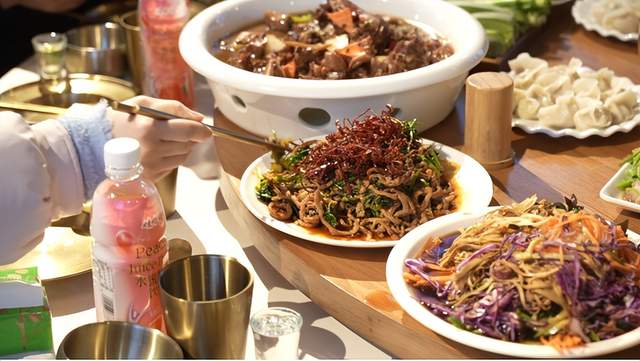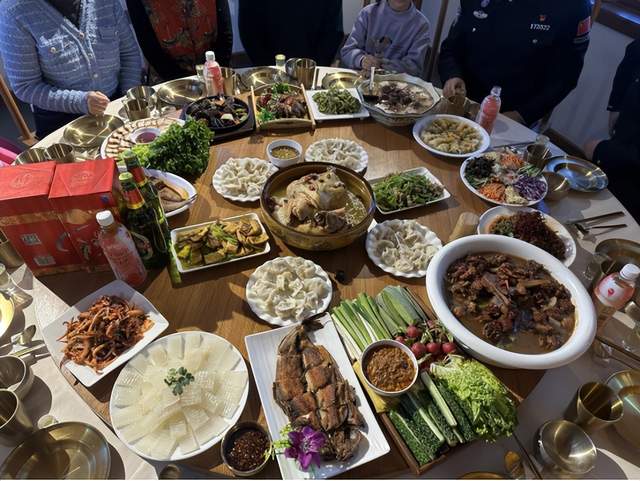 这桌承载着美好祈愿的新春家宴,遵循了中式传统“四平八稳”的宴席规制,融入了长白边境特色风味。本地经典佳肴与传统年菜巧妙结合,每一道菜既藏着对新年平平安安、稳稳当当的美好期盼,更带着边城独有的地域温情。四样凉菜清爽解腻,为热菜登场铺陈暖意;八道热菜作为宴席精髓,四素四荤、荤素相宜,搭配长白特色米肠、明太鱼、鱿鱼等本地招牌菜,让每一口滋味都连着乡愁,每一道菜品都饱含心意。