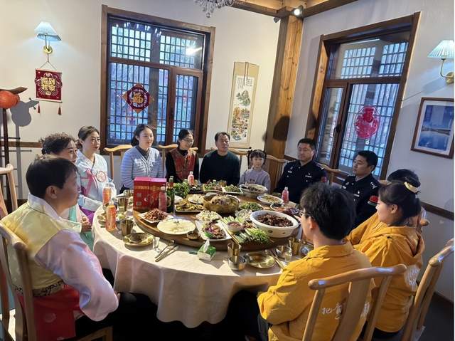 “说一千,道一万,三十晚上吃顿饭。”年夜饭是中国人刻在骨子里的团圆仪式,这场为天南地北长白人筹备的新春家宴,更是将这份团圆情拉满。来自各地的长白游子、坚守岗位的民警、扎根边城的志愿者与本地各族乡亲相邻而坐,你一言我一语分享着一年的收获与期盼:有人讲述在外打拼的见闻,有人诉说守护边境的坚守,有人畅谈服务基层的感悟,长辈们叮嘱着平安顺遂,年轻人送上祝福与期许,举杯共饮的清脆声响、此起彼伏的欢笑声、暖心的叮嘱声交织在一起,让长白的冰雪间,漾起浓浓的烟火气与团圆味,也让每一位异乡人都找到了家的归属感。