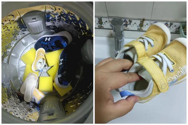 建议:用旧洗衣机洗鞋,可以花几块钱网购几个马桶刷刷头,清洗时可以增加摩擦力,洗鞋更干净。