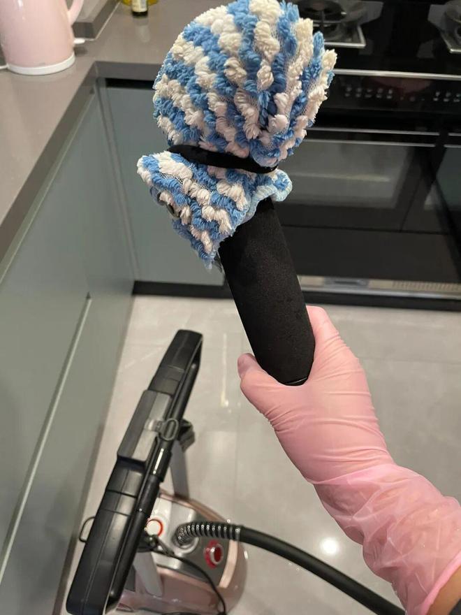 后来大扫除看到它,给它包上抹布,这不就是妥妥的蒸汽清洁机嘛,不用加任何清洁剂,就能把厨房油渍全搞定。
