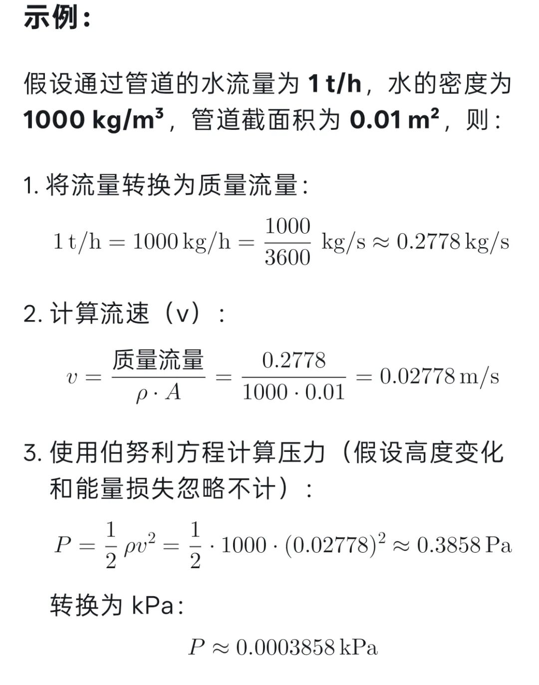 要将流量(t/h)转换为压力(kPa),需要知道具体的系统特性,例如管道尺寸、流体密度、流速等。通常需要以下步骤: