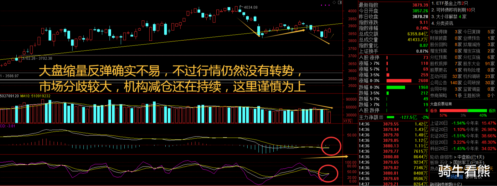 上证指数周四低开高走一度翻红,大资金开始聚焦权重类个股,主力资金拉升金融股也是为了摆明姿态,现阶段的行情有点“混日子”。尽管市场短期可能仍有波动,下跌则是更好的布局机会,策略层面以择机布局为主,备战跨年行情,关注半年线支撑和市场缩量情况。接下来注意上证指数能否在3870点之上稳住。