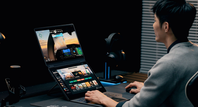 除了机器人以外,PC 领域同样释放出强烈的“效率升级”信号。英特尔在本届展会上带来了第三代酷睿 Ultra 处理器,而 ROG 也是首批搭载第三代酷睿 Ultra 处理器ROG 幻16 双屏。这款产品的核心看点,正是其搭载的英特尔酷睿 Ultra 9 处理器 386H,在性能、能效和形态设计上同步发力,试图把原本受限于桌面的高效工作方式,真正带进移动场景。