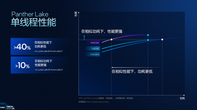 如果说混合架构解决的是“任务如何分配”的问题,那么 Intel 18A 制程则是从硬件底层进一步优化平台能耗。基于Intel 18A工艺打造的英特尔酷睿 Ultra 9 处理器 386H还引入了全环绕栅极晶体管和背部供电方案,通过更精细的电流控制与更高效的供电路径,减少无效功耗和信号干扰,使能效表现进一步拉升。在此基础上,这一代平台在部分使用场景下相较已经表现出色的 Lunar Lake 仍有提升空间。根据相关数据,在办公场景下续航可达约 9 小时,而在流媒体播放等轻负载状态下,续航甚至可延伸至 27 小时,更贴合移动办公的实际需求。
