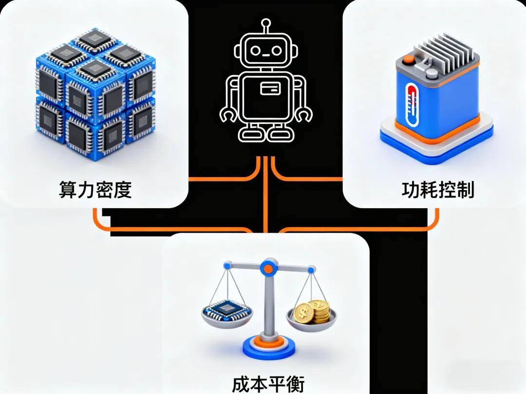 即便未来算法突破瓶颈,当前机器人的算力供给能力也难以承载复杂的智能运算,形成“脑带不动体”的尴尬局面。这种算力瓶颈并非简单的“算力不足”,而是涵盖算力密度、功耗控制与成本平衡的系统性难题。