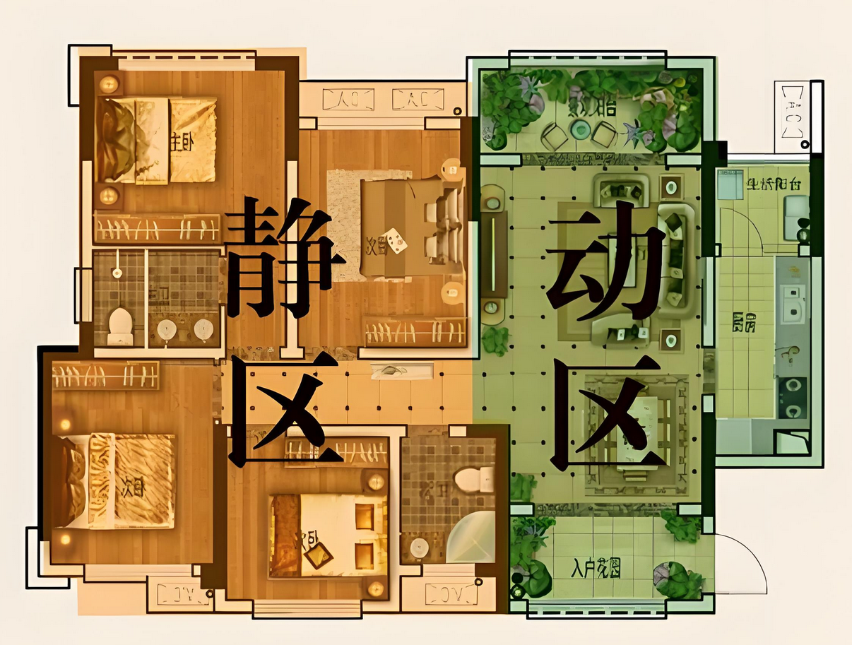 好户型需要具备的第四个因素就是要满足动静分区、干湿分离。