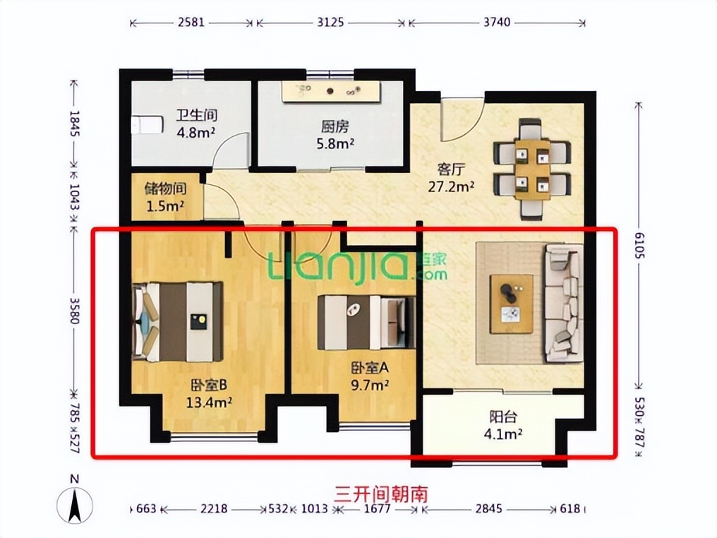 好户型需要具备的第二个因素就是户型要具备南北通透。