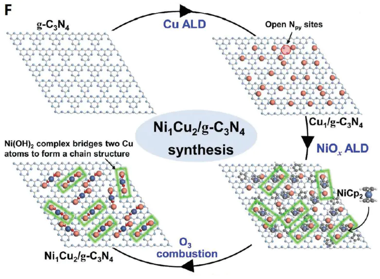 7N4上构建了独特的纳米岛支撑的三原子催化剂(。具体而言,在两个相邻的M-N配位位点之间引入第三金属原子,形成线性三原子结构,例如34FeCu三角形。这种设计策略是在先前g-CN纳米岛的基础上发展而来的。