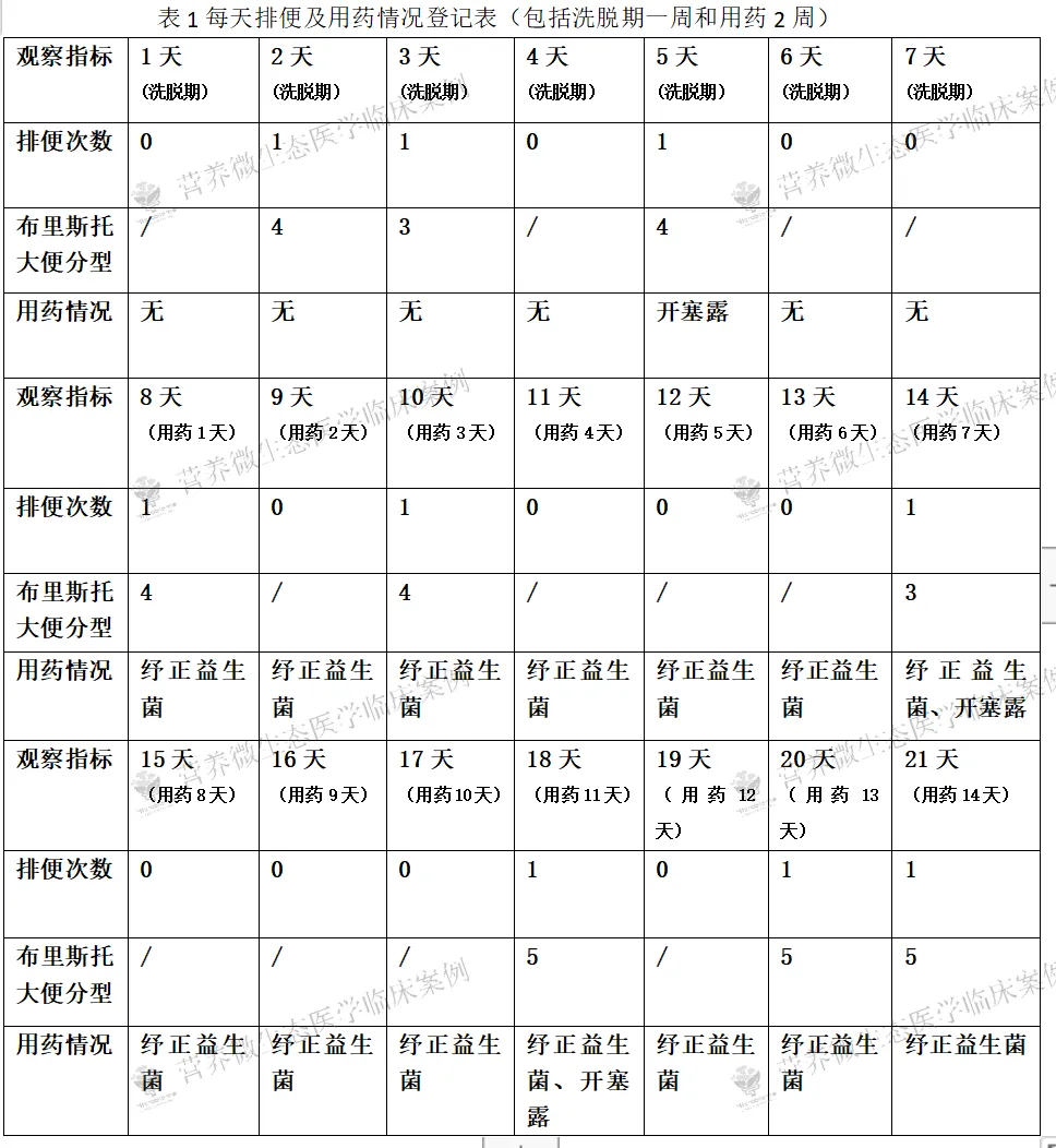 该案例徐某服用益生菌后两周疗效主要表现为大便性状改变,大便变软,不借助开塞露的情况下也能自主排便,同时停服益生菌后也能维持至少2周左右的疗效(排除抗生素的影响)。这说明益生菌的治疗对于她来说是有效果的。