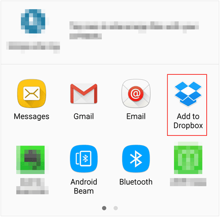 步骤 2:转到源 Android 手机上的图库,然后选择您计划传输的所需照片。然后点击“共享”>“添加到 Dropbox ”将照片保存到 Dropbox 上。