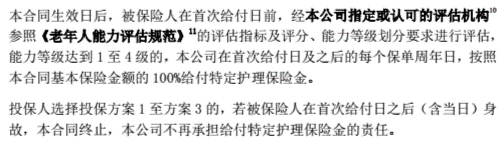 至于实际收益客户能不能拿到手,我从来没在任何一篇护理险产品的测评中看到详细分析,比如某司的护理险条款中提到的《老年人能力评估规范》是什么?