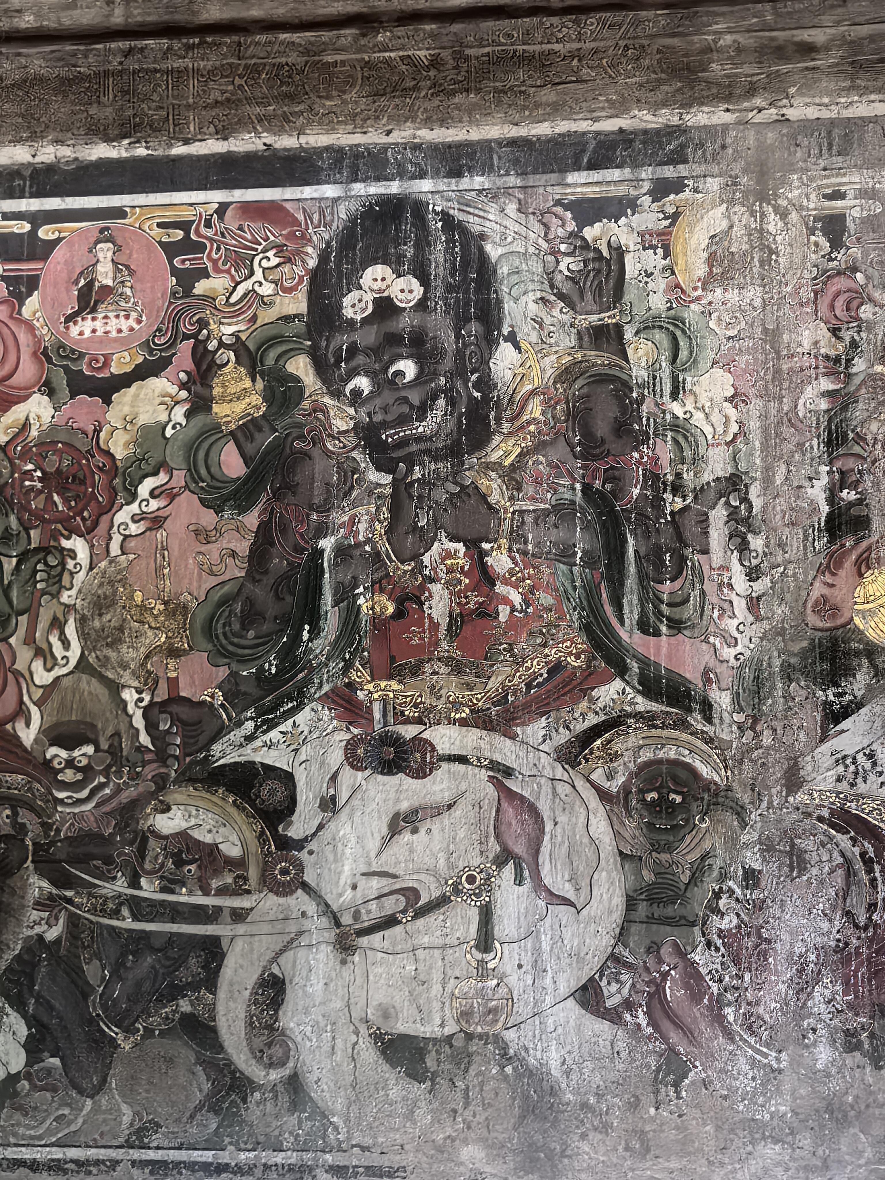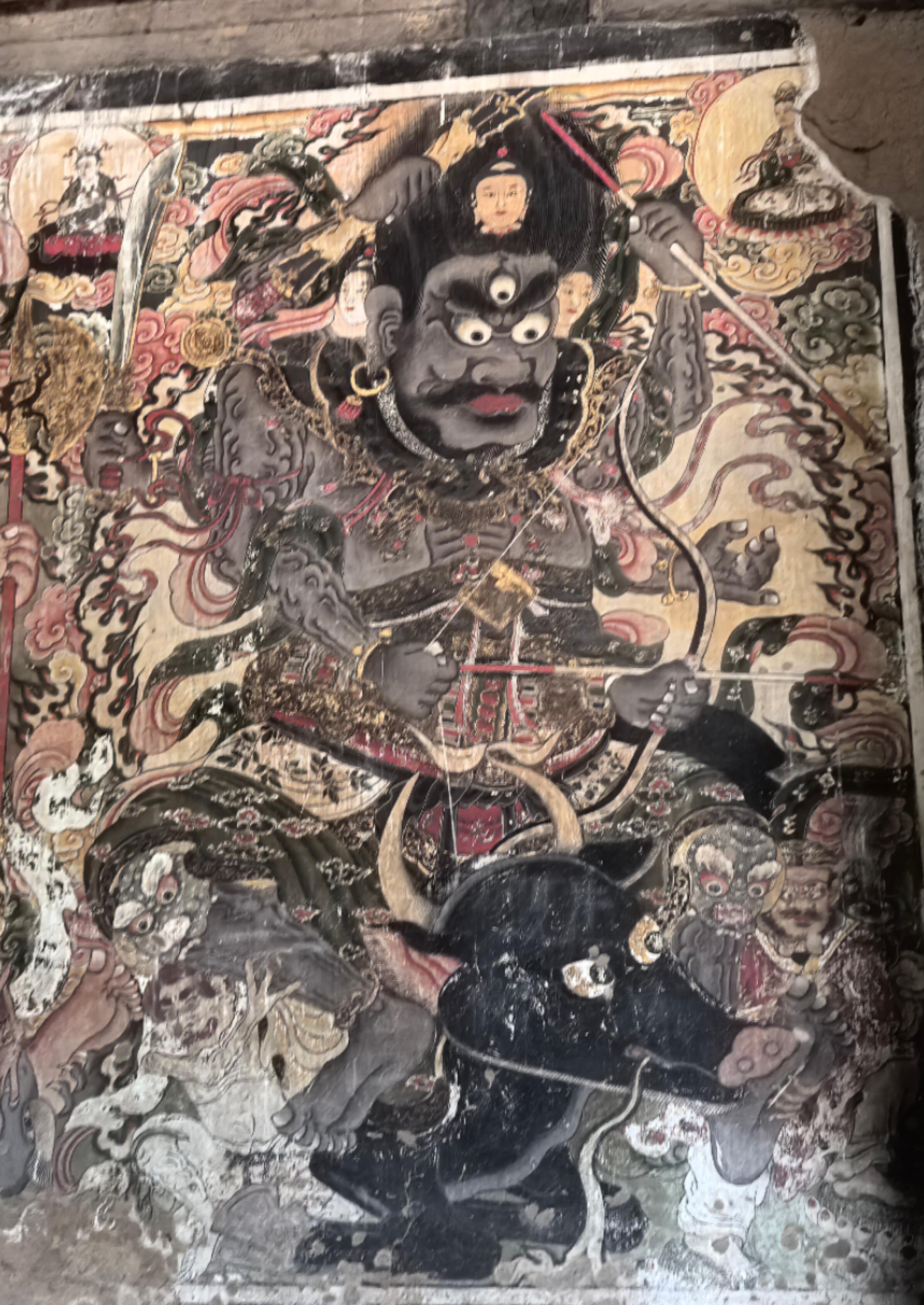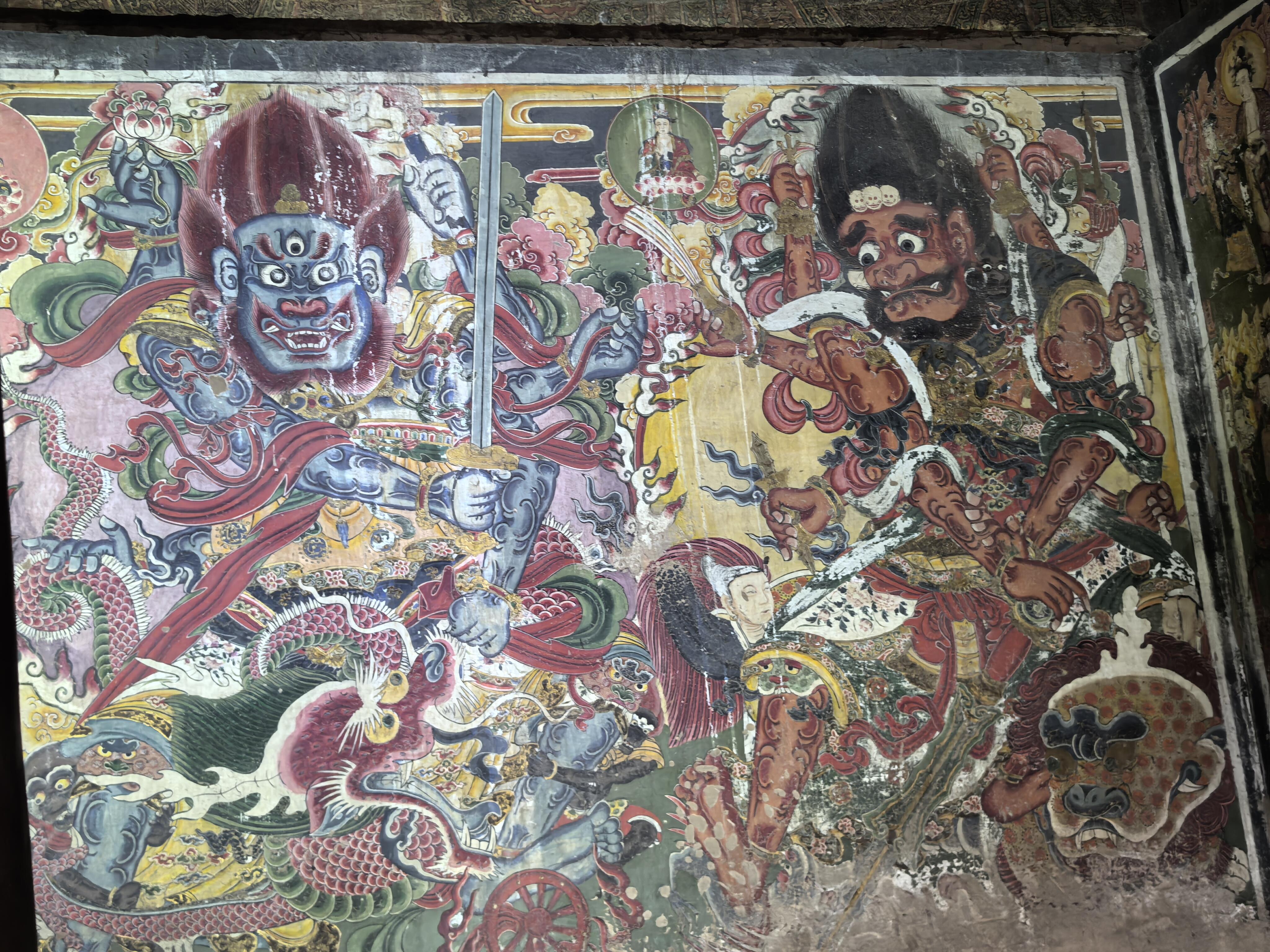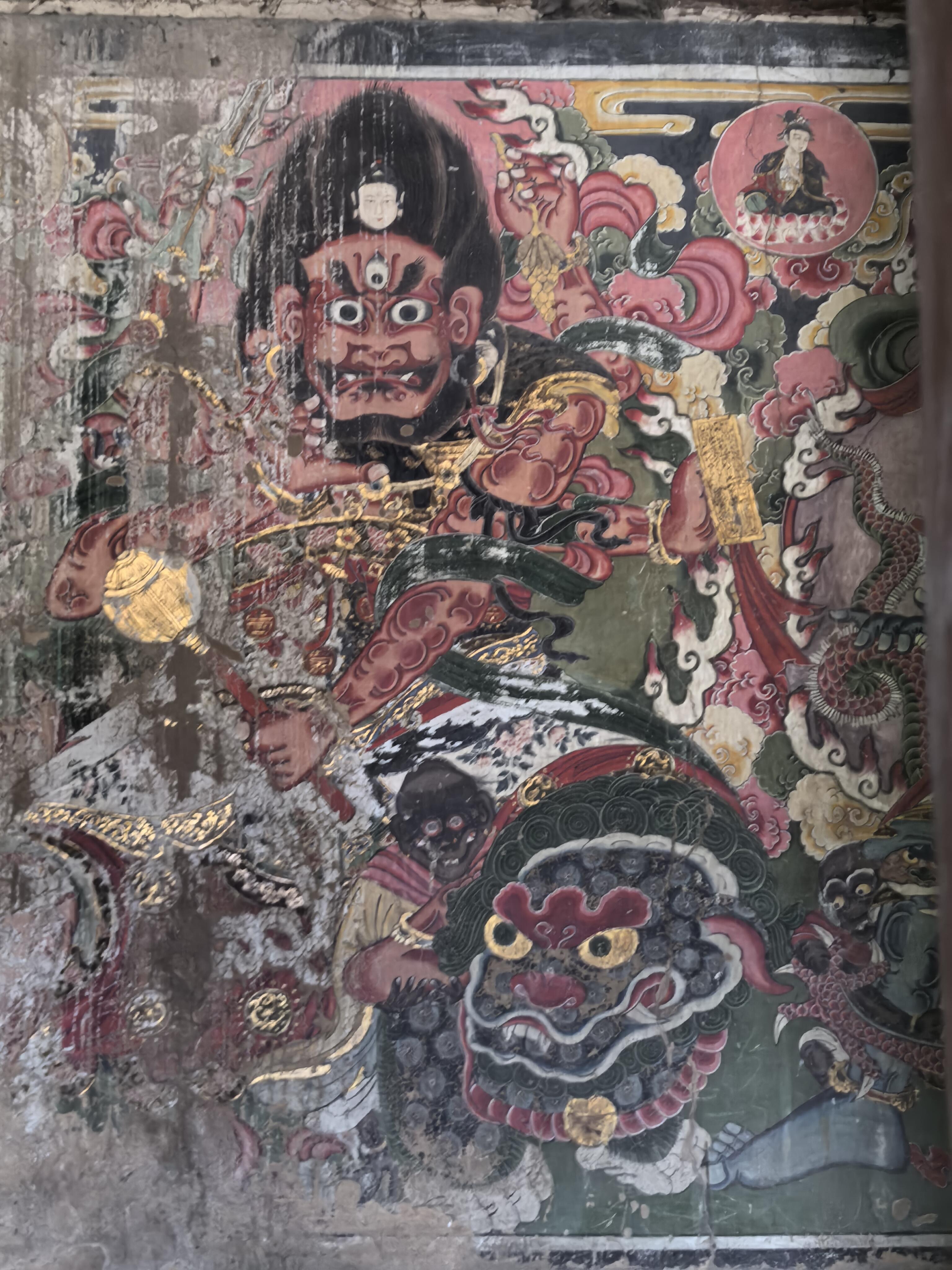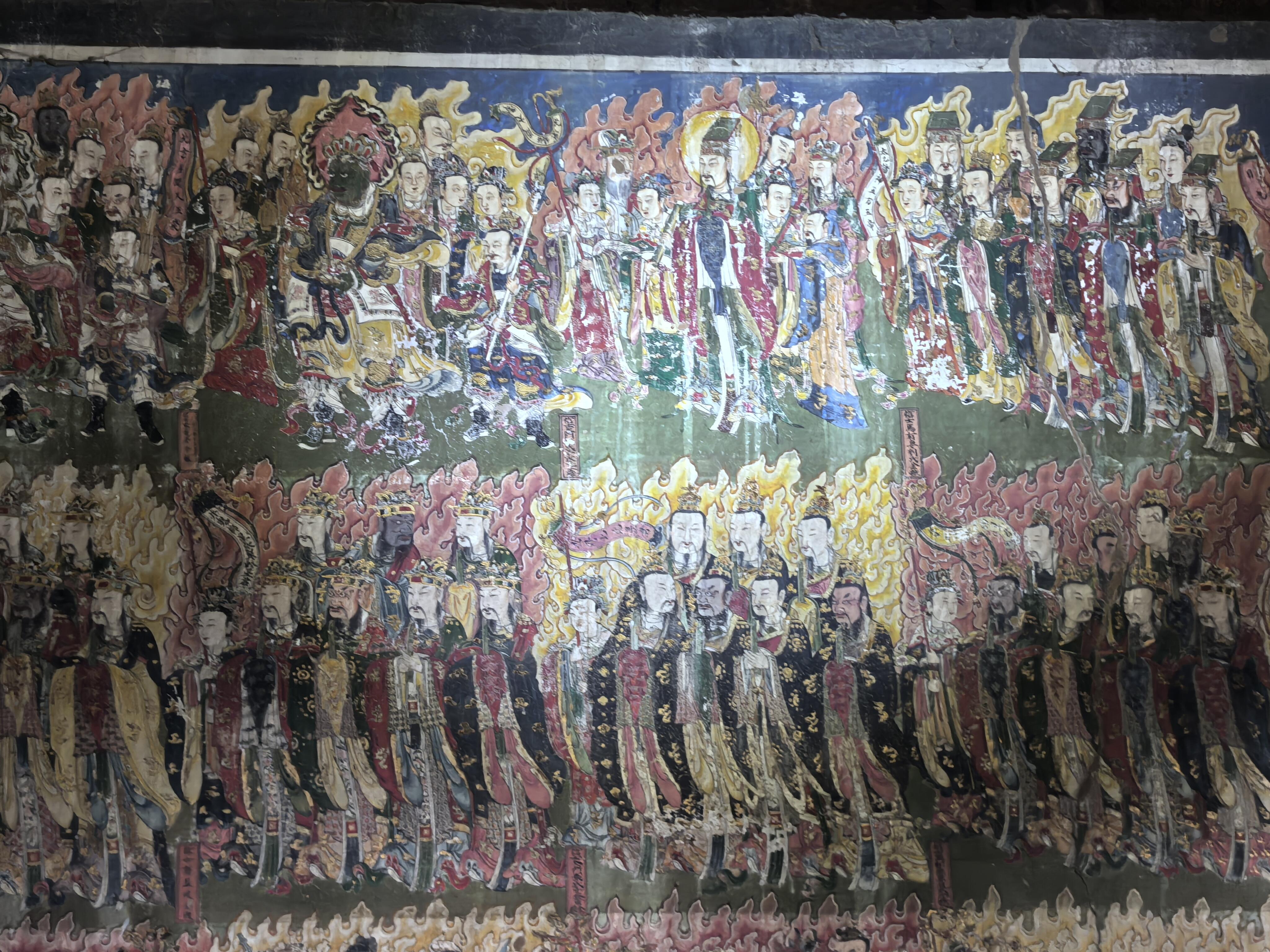 壁画的内容更是包罗万象。儒释道三教的人物共处一墙,孔子与老子并肩而立,佛陀端坐在莲花座上,全然没有教派之争的隔阂。其中最珍贵的当属明王像,这些元代的原作历经风雨,色彩依然浓烈,线条依然流畅。两侧的水路法会图则是明清时期补绘,虽然晚了几百年,却与元代壁画浑然一体,毫无违和感。