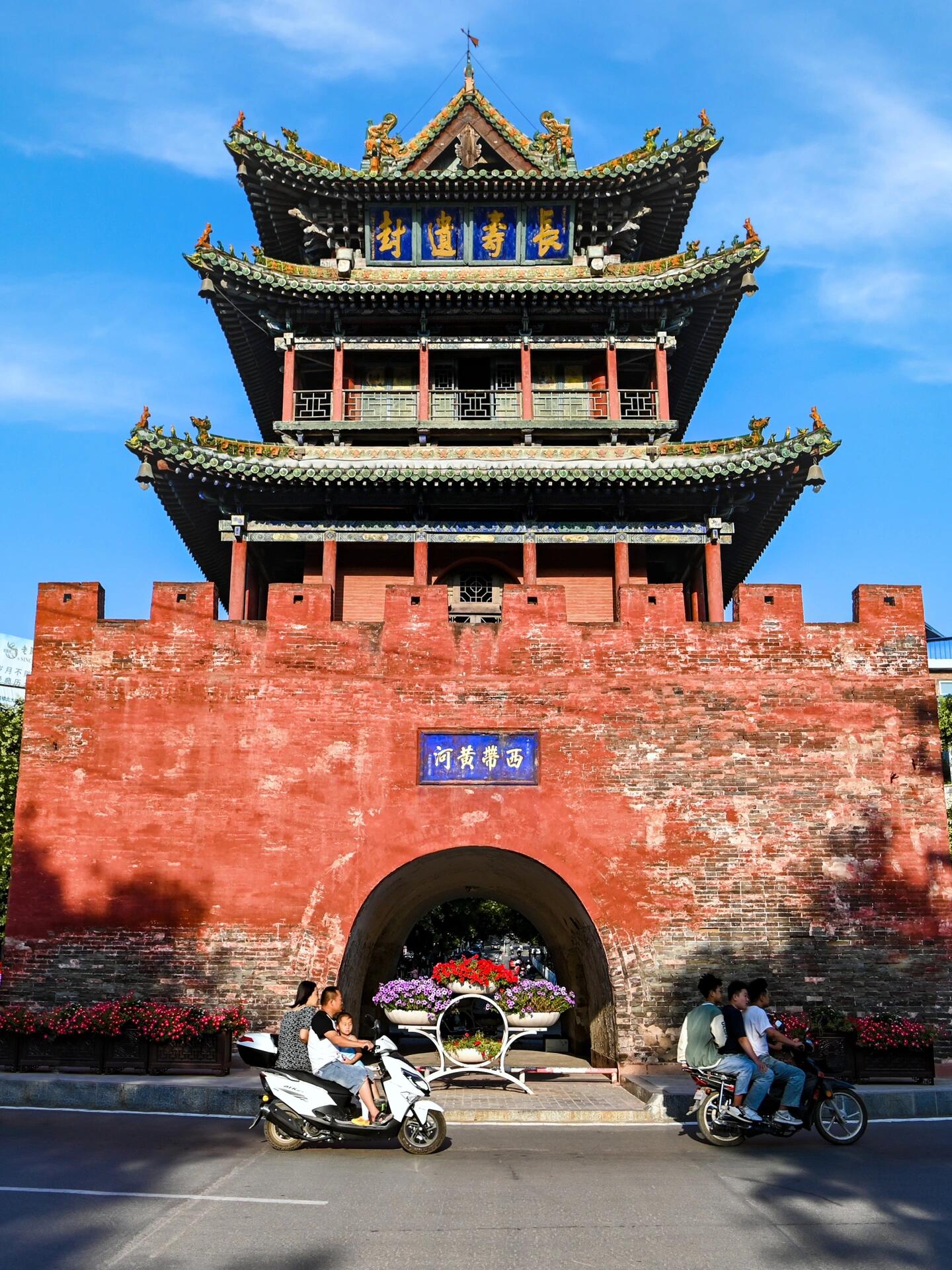 鼓楼由墩台和台上楼阁两部分组成。墩台呈方形,用青砖一块块垒砌而成,表面涂着朱红色,颜色虽经岁月磨损,却依旧古朴庄重,仿佛一位沉稳的老者,默默地守护着这座城。台下设十字券门洞,四个方向贯通,方便行人、车辆穿梭。从东侧的露天梯向上攀爬,每一步都能感受到历史的厚重。踏上台阶时,能看到砖块表面因长期踩踏而形成的凹陷,那是几百年来无数人留下的足迹。