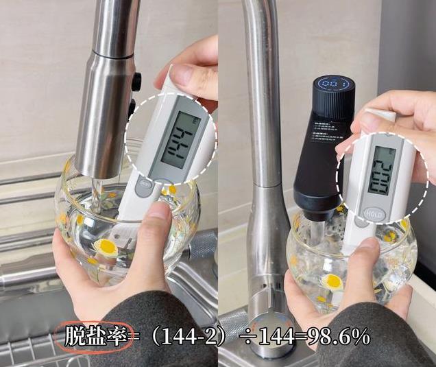 「脱盐率=(自来水TDS-过滤水TDS)÷自来水TDS×100%」