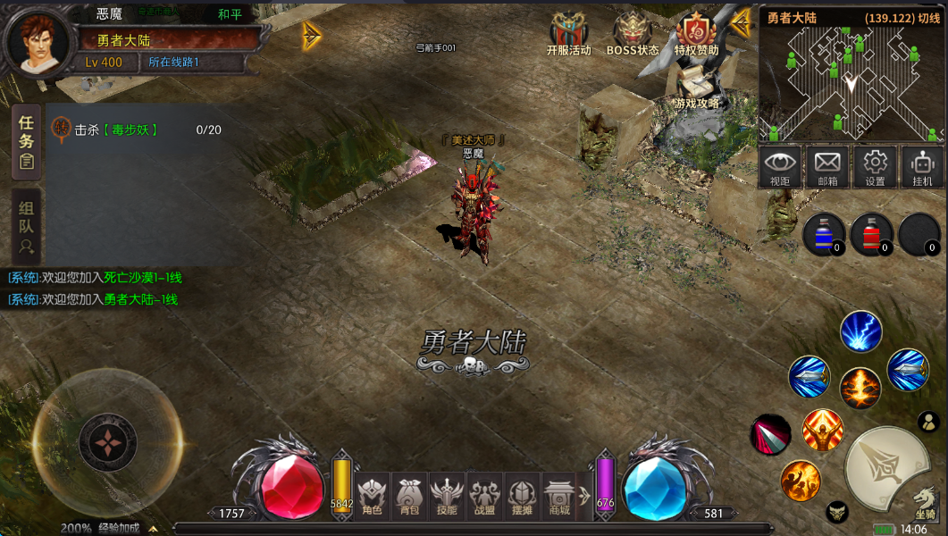 特色:作为新手首要的练级与探索地图,勇者大陆的野怪是产出各类职业技能书与技能石的重要来源。对于魔法师职业而言,前期在此刷取关键技能书,是快速形成战力、顺畅起号的关键。此外,地图安全区是游戏中最重要的自由摆摊交易区,玩家间的装备、材料流通主要在此进行。