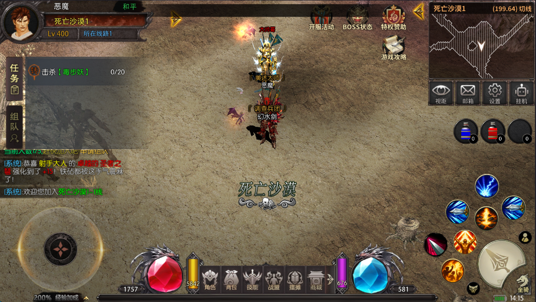 特色:死亡沙漠的BOSS价值连城,其掉落列表堪称奢华,包括高级功能宝石、顶级坐骑合成核心、骑士终极技能以及各类高阶卓越装备。这里是服务器高端经济体系的资源源头,每一位志在巅峰的玩家都必须在此证明自己。