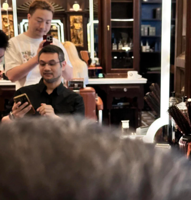 现场造型师透露,纳迪姆对形象管理颇为讲究,修剪过程中不时用手机确认角度,最终呈现的立体渐变发型令其年轻十岁不止。
