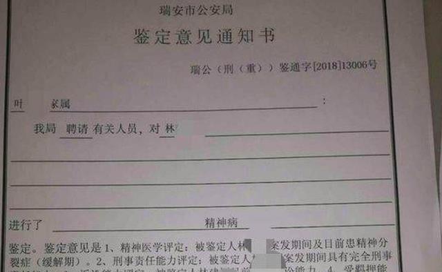 果不其然,就在法官审理该案件的时候,林建厦的律师出示了他精神分裂症的证明,还有基于他自首,请求法官轻判的请求。