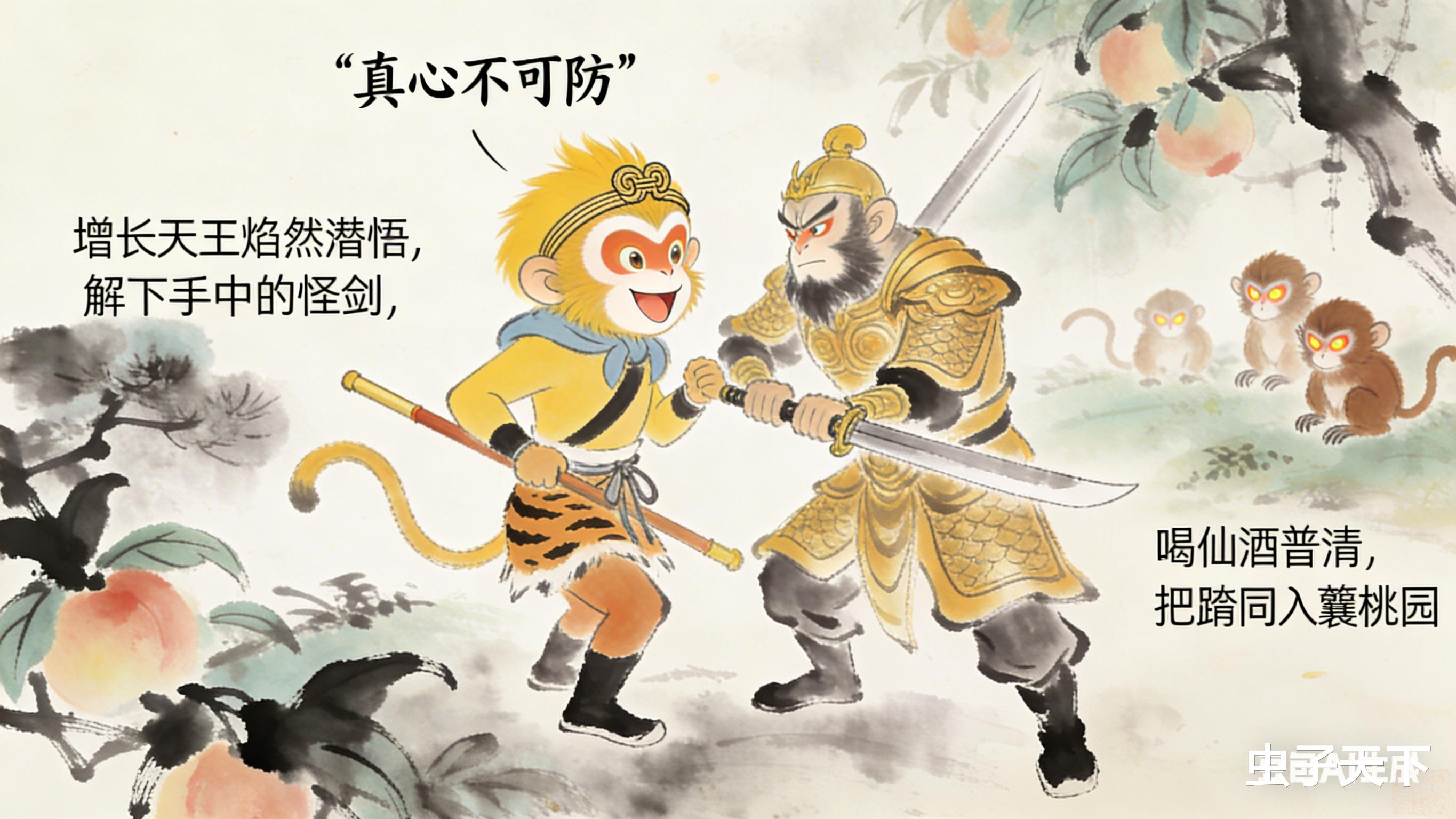 孙悟空笑道:“最高明的变化是变心念。你紧盯孙悟空,却不知我已把自己当成受邀宾客。真心不可防,你的剑自然认不出了。”
