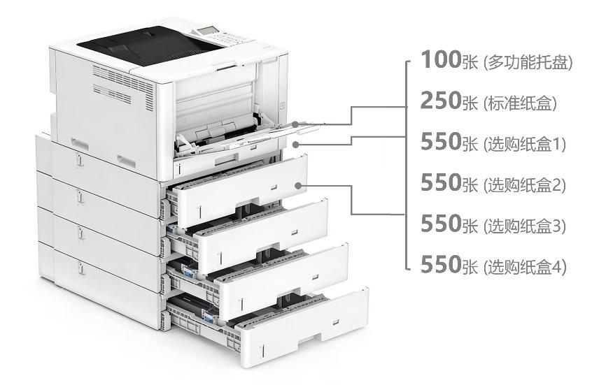 LBP811Cx支持6种以上纸张,进纸容量最高可达2,550张