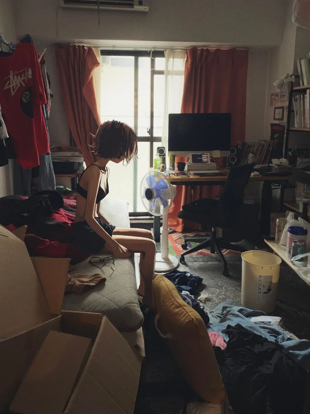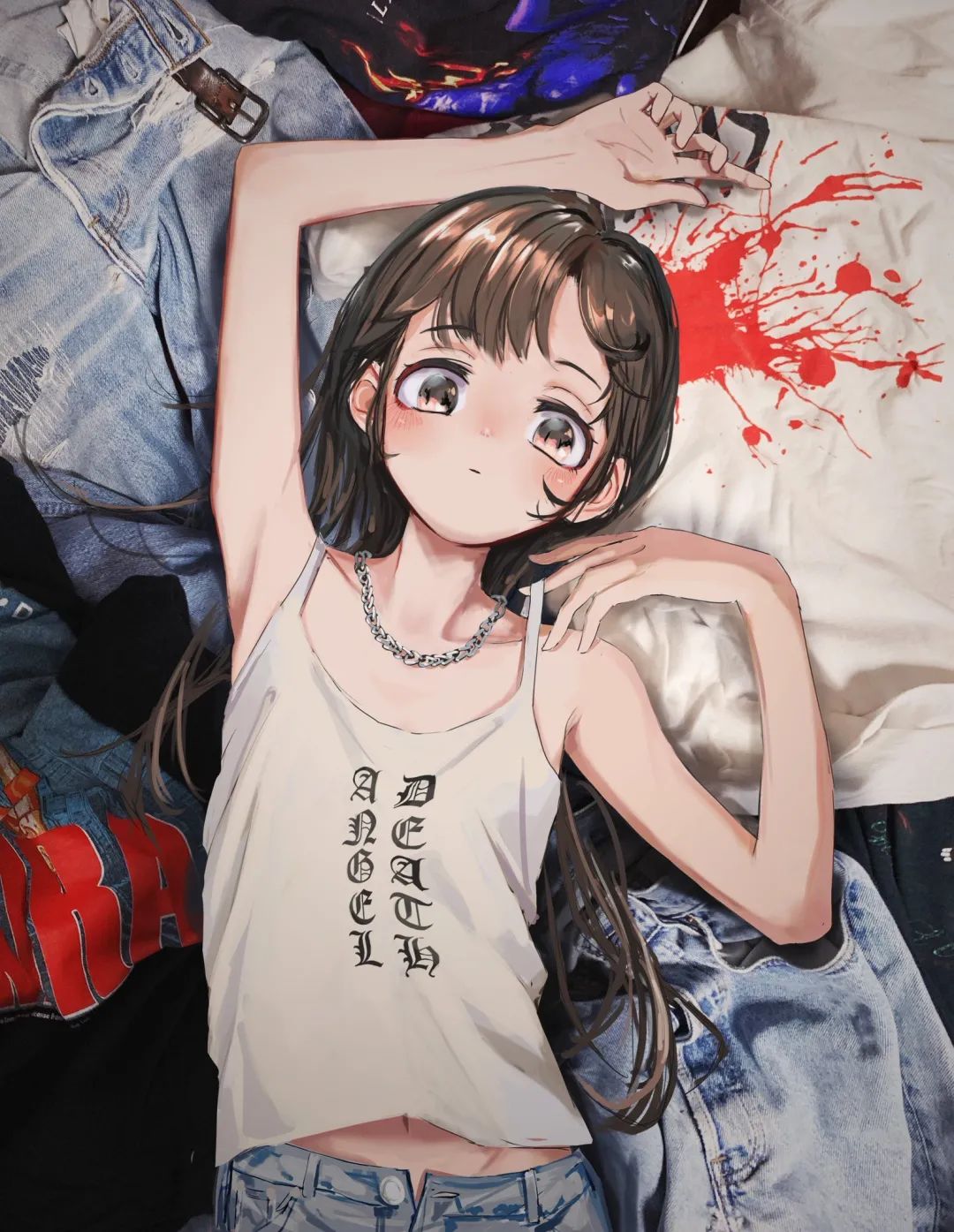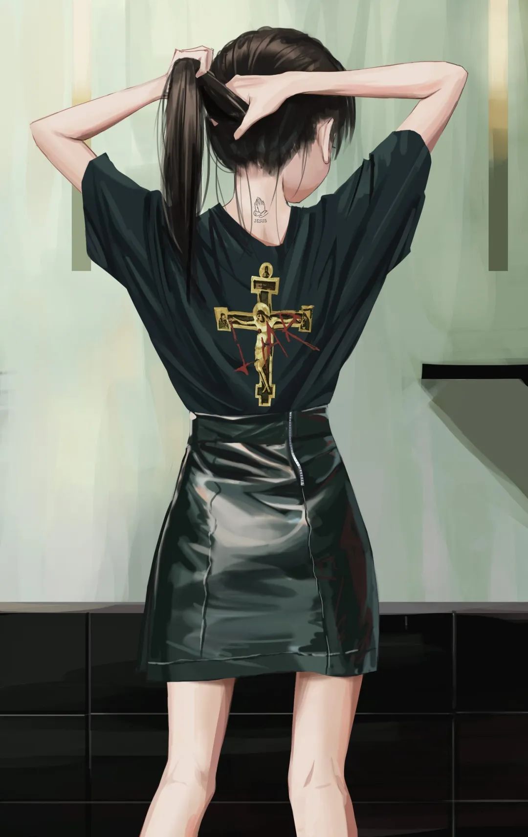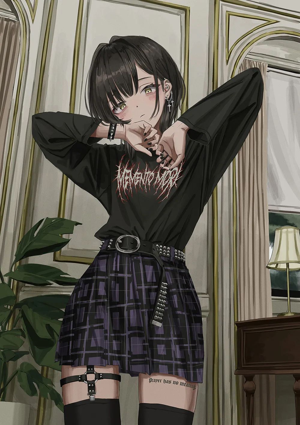 她的作品主要是暗色系的风格,内容多为各种穿着暗黑系服装的酷酷的女孩子