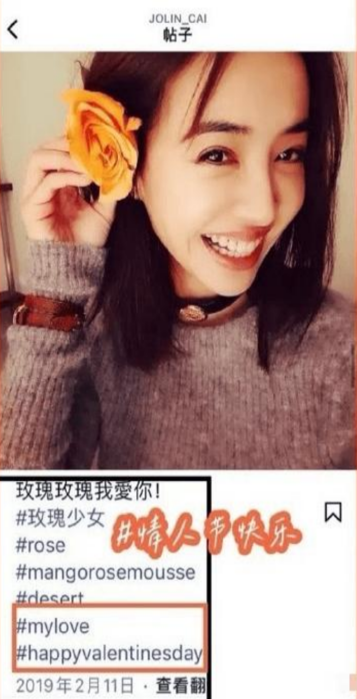 台媒指出,蔡依林和彭于晏近年来多次在社交平台上晒出相似的照片,比如情人节期间,两人都曾发布过黄玫瑰的照片。
