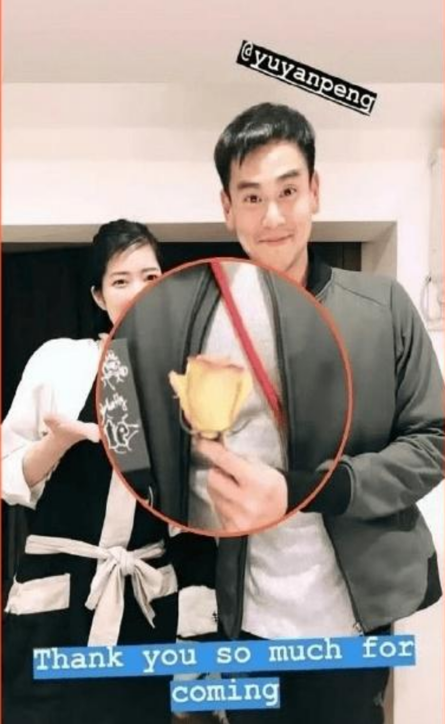更巧的是,彭于晏在一家餐厅与老板合影时,手里拿着的花束与蔡依林自拍中的花几乎一模一样。