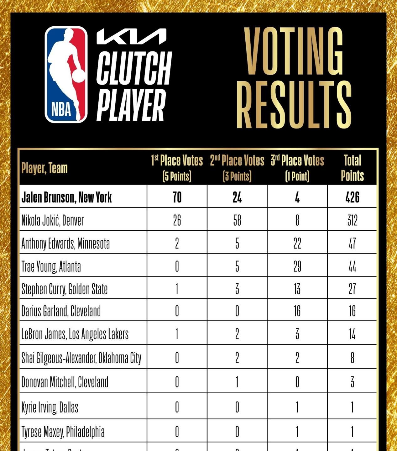 北京时间4月24日,NBA常规赛年度奖项持续揭晓,万众瞩目的最佳关键球员奖尘埃落定。尼克斯后卫布伦森以426分的高票当选,力压约基奇的312分和爱德华兹的47分,成功摘下杰里-韦斯特奖桂冠。