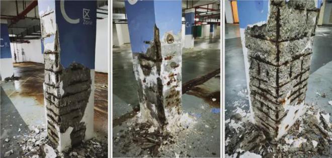 触目惊心的现场:墙体脱落、钢筋锈蚀