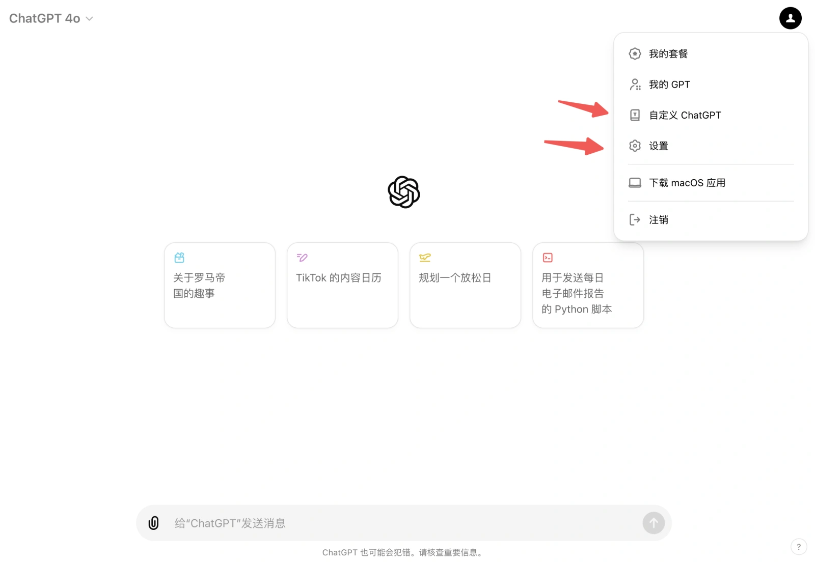 首先新版的 GPT,界面修改了,就是设置从左下角变移到右上角,来看看最新界面