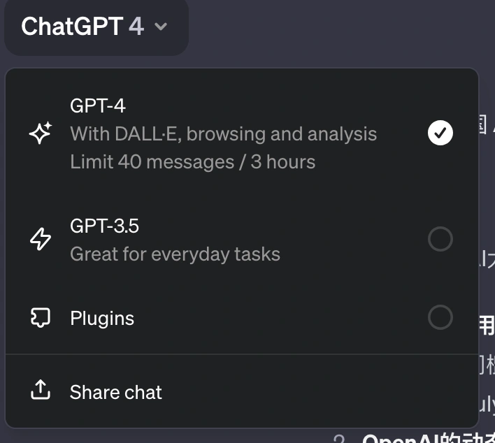 首先 ChatGPT 4.0 是需要开通 Plus 才能拥有的功能,需要每个月 20 美元。并不是无限使用的,每3小时有40 条对话的限制: