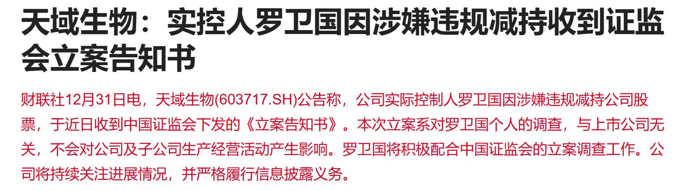 公司实控人被立案调查。