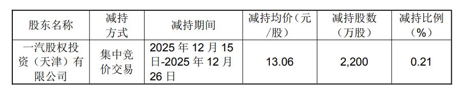 一汽投资减持2200万股。