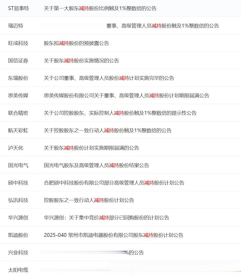 涉及减持的完整名单,放在文末。大家可以自行查看。