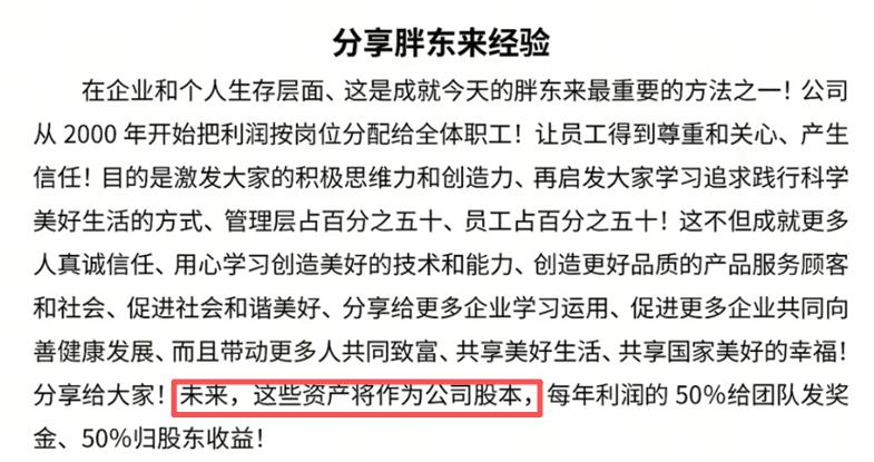 请大家注意,“分享胖东来经验”明确提到的是“资产”,而不是“利润”,实际上胖东来一年利润远远不到40亿元,大概在10亿元至15亿元之间。这里所说的资产分配,真正的意思是以个人分到的资产为基础来计算分红额,原文提到“未来,这些资产将作为公司股本”,与我的解读匹配了起来。