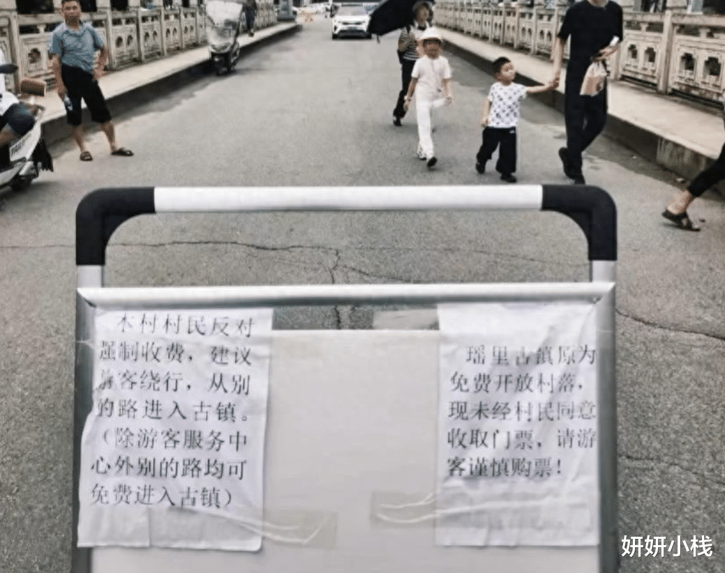 村民没有办法,这几天自发到路口和运营公司工作人员对峙,指引游客从其他不收费的通道进村。甚至还有村民打印通告,表示村民反对收取门票的行为,建议游客绕行免费通道入村游玩。