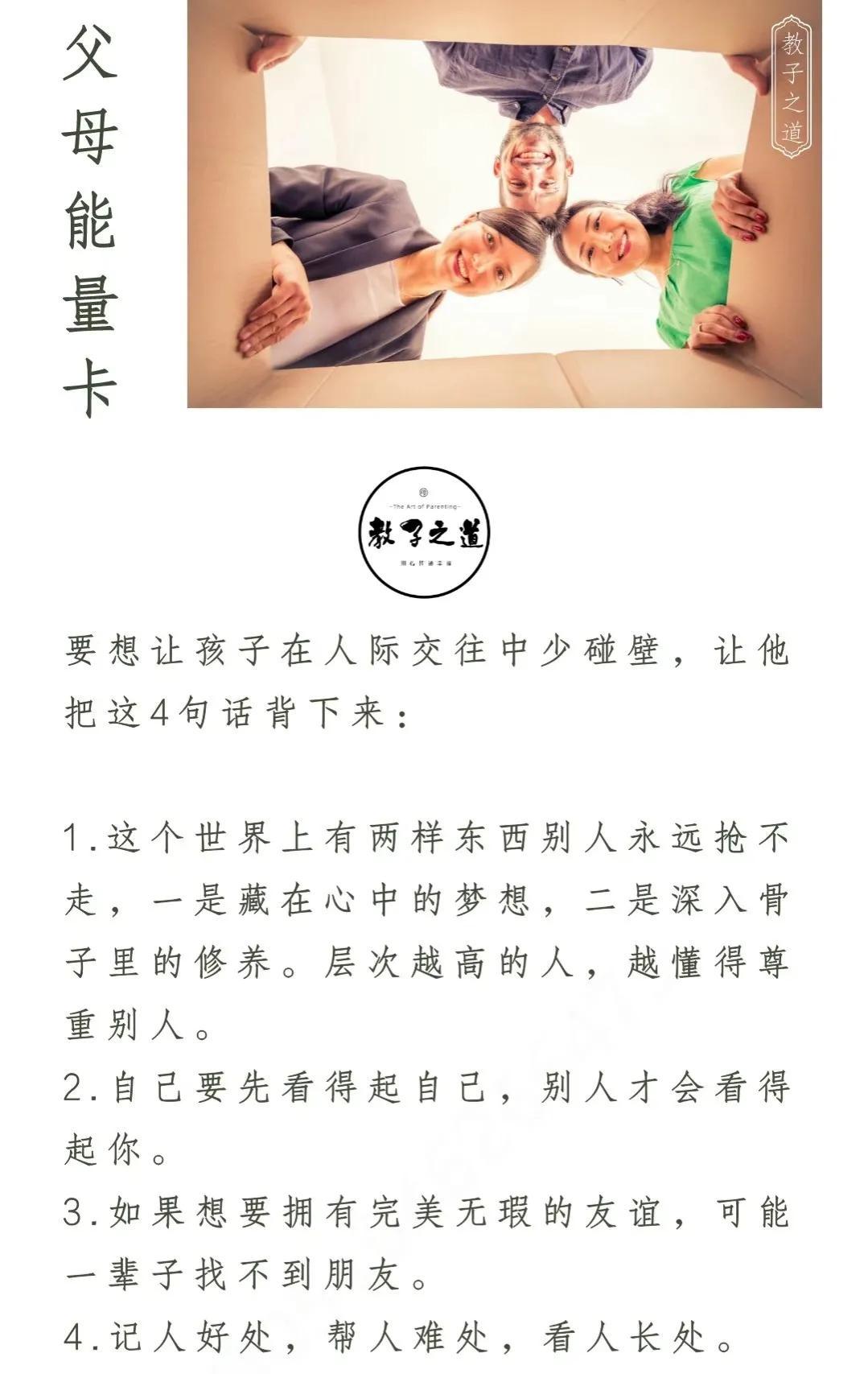 要想让孩子在人际交往中少碰壁,就让他把这4句话背下来: