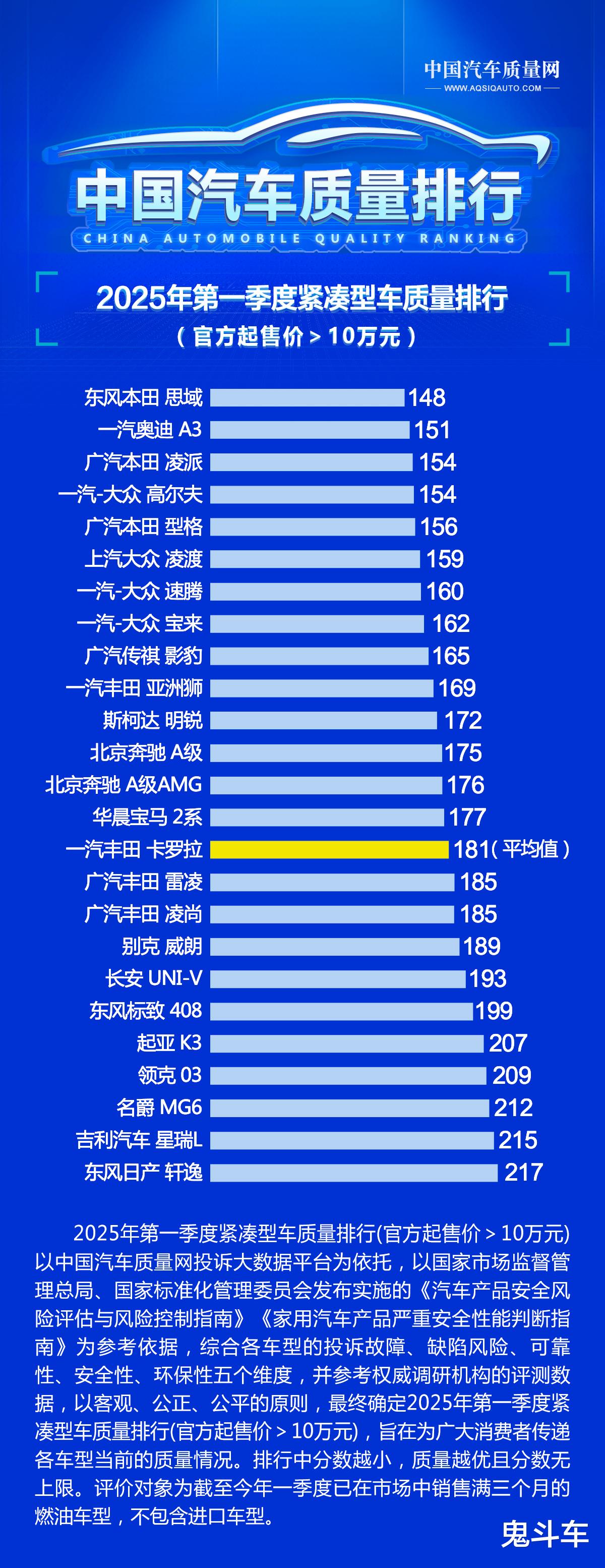 关于这一点,不妨看看汽车质量排名,日前,2025年第一季度紧凑型车质量排行(官方起售价>10万元)出炉。这份榜单上,共有25款紧凑型轿车参与评选,这些车型官方起售价都低于10万,分数越小代表产品质量越好。接下来,看看哪些车型上榜?