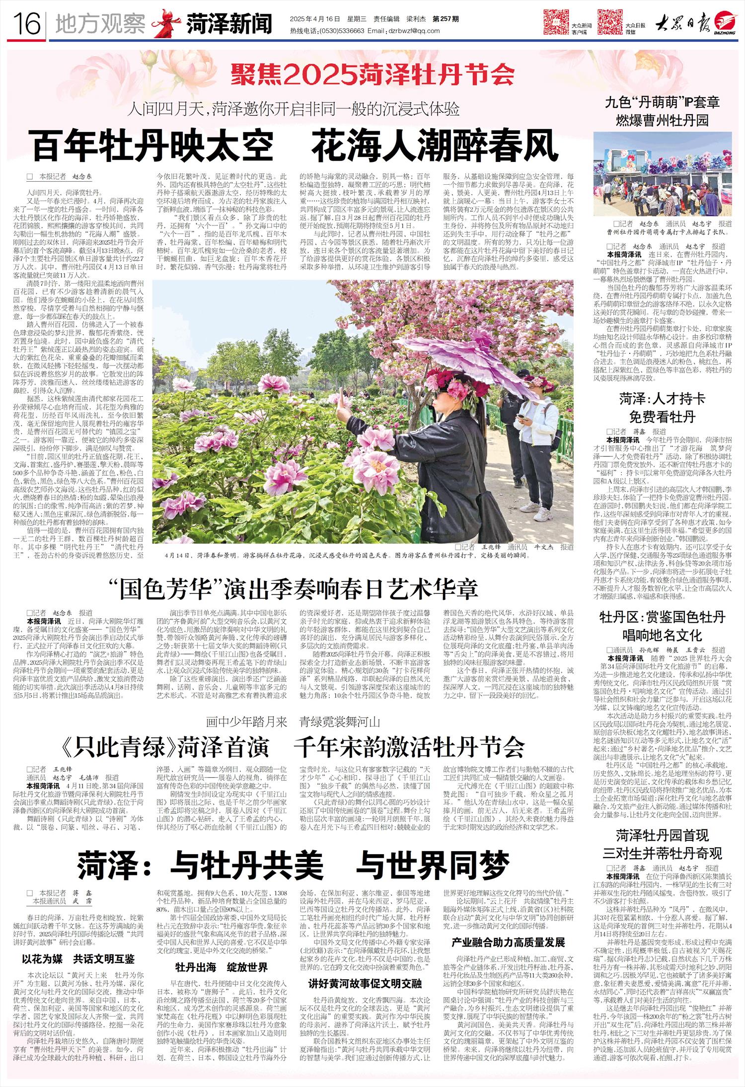 春日的菏泽,万亩牡丹竞相绽放,姹紫嫣红间跃动着千年文脉。在这芬芳满城的美好时节,2025菏泽牡丹国际传播论坛暨“共同讲好黄河故事”研讨会启幕。以花为媒 共话文明互鉴 本次论坛以“黄河天上来 牡丹为你开”为主题,以黄河为脉、牡丹为媒,深化黄河文化与牡丹文化的国际交流,推动中华优秀传统文化走向世界。来自中国、日本、荷兰、保加利亚、美国等国家和地区的文化学者、园艺专家及国际友人齐聚一堂,共同探讨牡丹文化的国际传播路径,挖掘一朵花背后的文明对话价值。 菏泽牡丹栽培历史悠久,自隋唐时期便享有“曹州牡丹甲天下”的美誉。如今,菏泽已成为全球最大的牡丹种植、科研、出口和观赏基地,拥有9大色系、10大花型、1308个牡丹品种,新品种培育数量占全国总量的80%,苗木出口量占全国90%以上。 第十四届全国政协常委、中国外文局局长杜占元在致辞中表示:“牡丹雍容华贵,象征幸福美好的盛世气象和高风亮节的君子品格,深受中国人民和世界人民的喜爱。它不仅是中华文化的瑰宝,更是中外文化交流的桥梁。”牡丹出海 绽放世界 早在唐代,牡丹便随中日文化交流传入日本,被称为“唐狮子”。此后,牡丹文化沿丝绸之路传播至法国、荷兰等20多个国家和地区,成为艺术创作的灵感源泉。荷兰画家梵高在《牡丹花瓶》中以鲜明色彩展现牡丹的生命力,美国作家赛珍珠以牡丹为意象创作小说《牡丹》,日本画家加山又造则用独特笔触描绘牡丹的华贵风姿。 近年来,菏泽积极推动“牡丹出海”计划,在荷兰、日本、韩国设立牡丹节海外分会场,在保加利亚、塞尔维亚、泰国等地建设海外牡丹园,并在马来西亚、罗马尼亚、巴西等国设立牡丹文化传播站。此外,菏泽工笔牡丹画亮相纽约时代广场大屏,牡丹籽油、牡丹花蕊茶等产品远销30多个国家和地区,让世界共享菏泽牡丹的独特魅力。 中国外文局文化传播中心外籍专家安泽(北欧籍)表示:“在菏泽佩戴牡丹花环,让我想起家乡的花卉文化。牡丹不仅是中国的,也是世界的,它在跨文化交流中扮演着重要角色。”讲好黄河故事促文明交融 牡丹沿黄绽放,文化香飘四海。本次论坛不仅是牡丹文化的全球表达,更是“黄河文化出海”的重要实践。黄河作为中华民族的母亲河,滋养了菏泽这片沃土,赋予牡丹独特的生长基因。 联合国教科文组织东亚地区办事处主任夏泽翰指出:“黄河与牡丹共同承载中华文明的智慧与美学。我们应通过创新传播方式,让世界更好地理解这些文化符号的当代价值。” 论坛期间,“云上花开 共叙情缘”牡丹主题海外媒体矩阵正式上线,沿黄省(区)社科院联合启动“黄河文化与中华文明”协同创新研究,进一步推动黄河文化的国际传播。产业融合助力高质量发展 菏泽牡丹产业已形成种植、加工、商贸、文旅等全产业链体系,开发出牡丹籽油、牡丹茶、牡丹化妆品及生物医药产品等11大类260余种,远销全球30多个国家和地区。 中国科学院植物研究所研究员舒庆艳在圆桌讨论中强调:“牡丹产业的科技创新与三产融合,为乡村振兴、生态文明建设提供了重要支撑,展现了中华民族的智慧传承。” 黄河润国色,美美共天香。菏泽牡丹与黄河文化的交融,不仅书写了中华优秀传统文化的瑰丽篇章,更架起了中外文明互鉴的桥梁。未来,菏泽将继续以牡丹为纽带,向世界传递中国文化的深厚底蕴与时代魅力。