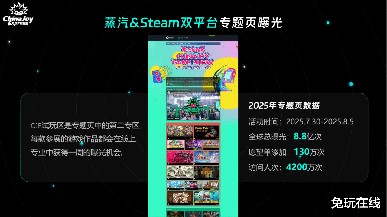 蒸汽&Steam双平台深度联动:入选参展游戏产品将于展期同步亮相专属活动页,实现了展会线量向线上商店页的高效转化,助力产品全球化愿望单(Wishlist)增长。