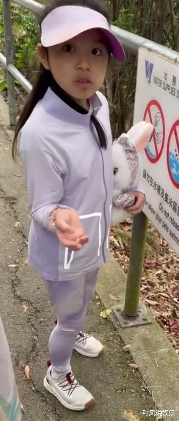 夫妻一起走在前面,两个女儿跟着爸爸妈妈,通过郭晶晶和两个女儿的对话,不难发现是姐姐在照顾妹妹霍中怡。